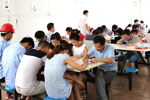 講解完后發了知識培訓考試卷,并要求必須百分百的通過考核。現場大家都很認真,最后都滿分通過考核。