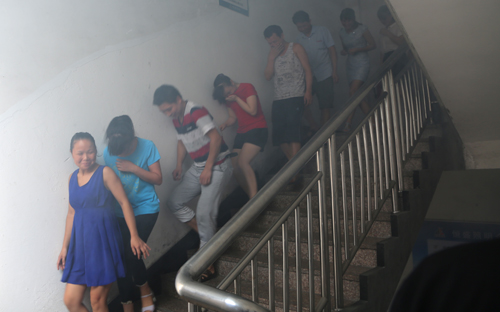 火場逃生演習要點:必需要用打濕的毛巾捂住口鼻,彎腰或者匍匐沿墻邊走。這樣就不會在濃煙吸入有害煙氣中毒或被火灼傷,彎腰或者匍匐是因為有害毒氣都是往上升,最下層是生命的真空區。沿墻邊走就不會在火場迷失方向,有墻就有門,總會找到出口,安全退出。